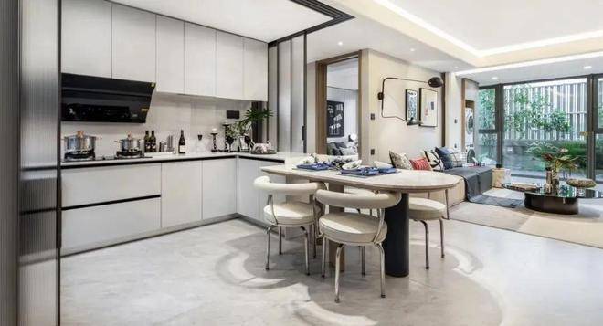 魔鬼小细节,让居住更加舒适。客厅、卧室墙面均为墙布交付,电视机的背景墙为岩板交付,金地嘉峯汇售楼处电线万级的项目里是看不到的;还有顶面交付射灯及隐藏灯带,使得居家的灯光更加柔和温馨!阳台大面积玻璃落地窗,视野通透;阳台移门可结合有必要进行地轨拉平、从而地砖通铺实现餐客厅阳台一体化。